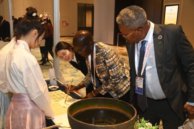 会间,莫桑比克共和国与会代表与肯尼亚共和国代表进行交流。