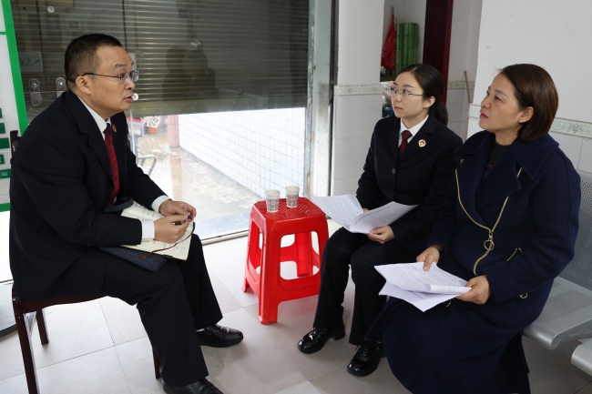 2025年11月,四川省江安县检察院检察官向全国人大代表,江安县仁和镇鹿鸣村党支部书记、村委会主任任敏(右)报告该院公益诉讼检察工作,听取代表对公益诉讼检察工作的意见。(转自:最高人民检察院)