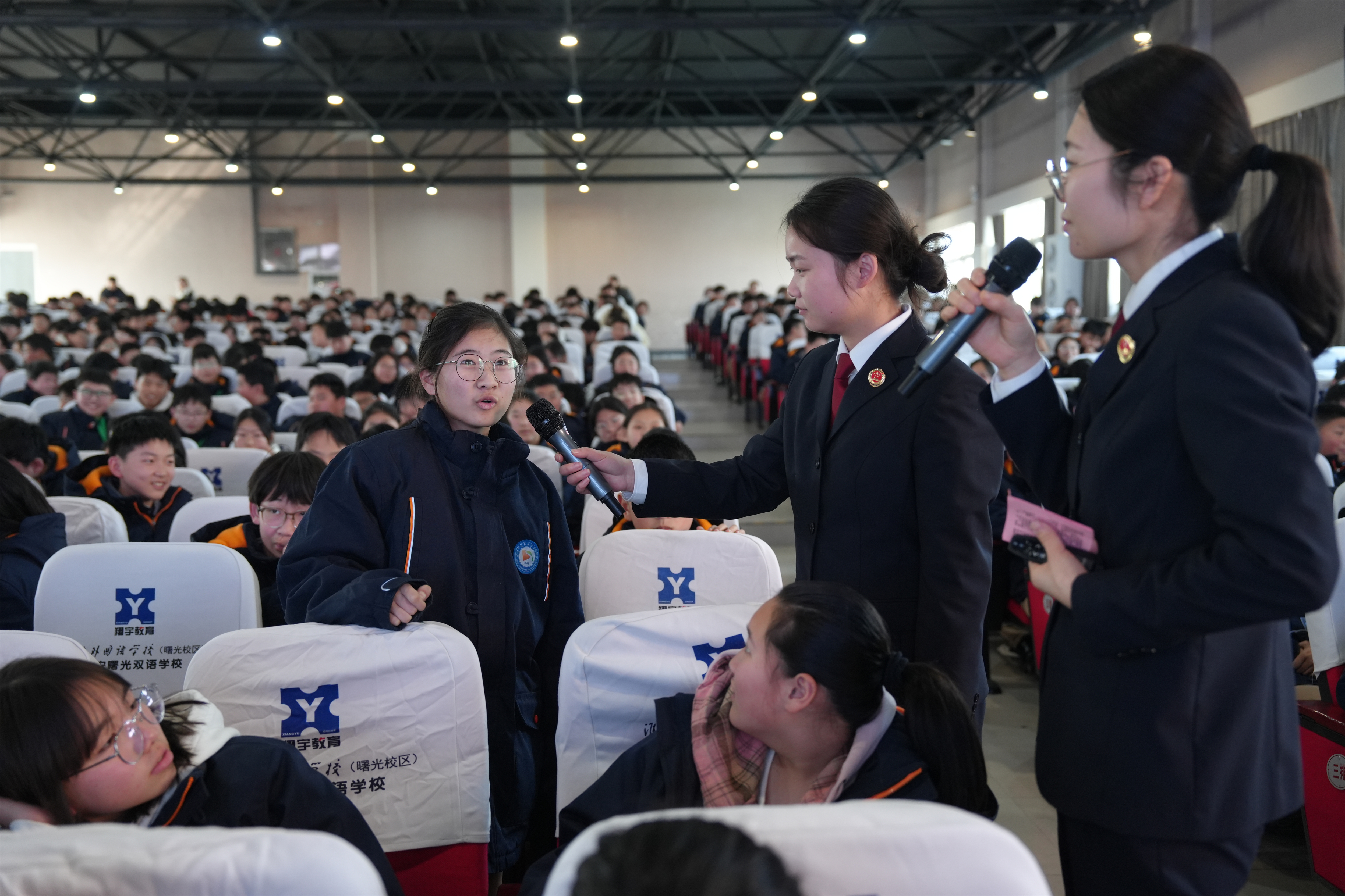 近日,江苏省淮安市淮安区“法治心安·青春期安全法治教育”活动启动。活动中,淮安区检察院将组织法治副校长开展以预防青春期违法犯罪为主要内容的课程教育,区妇联将组织专业的“女童保护”讲师同步开展以生理健康、心理调适为主要内容的课程教育。2026年7月前,两个主题的课程将实现全区24所中学全覆盖。图为启动仪式结束后,淮安区检察院未检检察官围绕如何处理青春期异性同学关系、如何避免冲动型违法犯罪等话题与某学校同学进行交流。(转自:最高人民检察院)